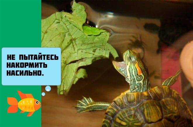 Заставить черепаху есть не понравившийся ей корм невозможно.