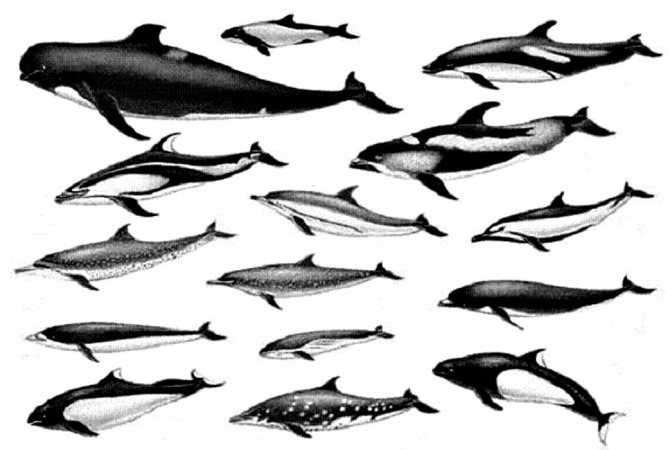 Китообразные — это отряд морских млекопитающих, эволюционировавшие от наземных млекопитающих. Они развили множество особенностей, которые делают их хорошо приспособленными для жизни в воде, включая обтекаемое тело, ласты, дыхало и слой жира для изоляции. Китообразные подразделяются на две основные группы: усатые киты (в том числе крупные киты, которые фильтруют через роговые пластинки мелких рыб, криль и моллюсков, такие как южный малый полосатик, сейвал, гренландский кит и др.) и зубатые киты (группа, к которой относятся дельфины). Другими зубатыми китами являются: косатка, белуха, нарвал, кашалот, речные дельфины и др.
