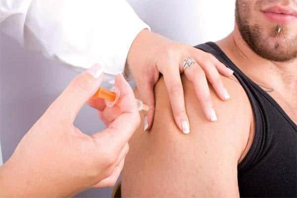 У человека есть только трое суток для лечения. Назначаются антирабические уколы. Раньше человеку делали 40 уколов в живот. Сейчас количество сократилось до 7, и делают их, как видно на фото, в плечо.