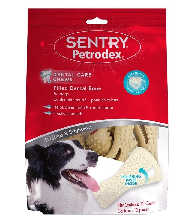 | Специальные дентальные лакомства | Давайте собаке лакомство согласно инструкции производителя. Убедитесь, что размер лакомства соответствует размеру собаки. | Механически очищают зубы во время жевания, массируют десны. Содержат компоненты, уменьшающие налет и освежающие дыхание. |