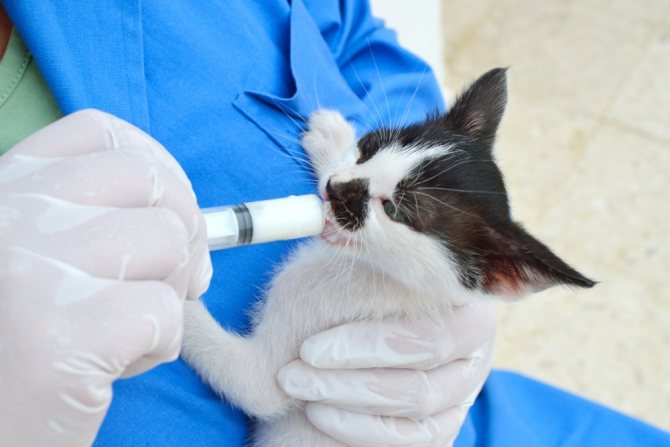 Принудительное кормление новорожденного котенка