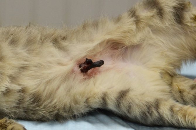 Пупочная грыжа у кошки.