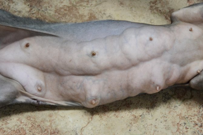- образование на теле питомца плотных бугорков, при надавливании на которые выделяются сгустки белого цвета;