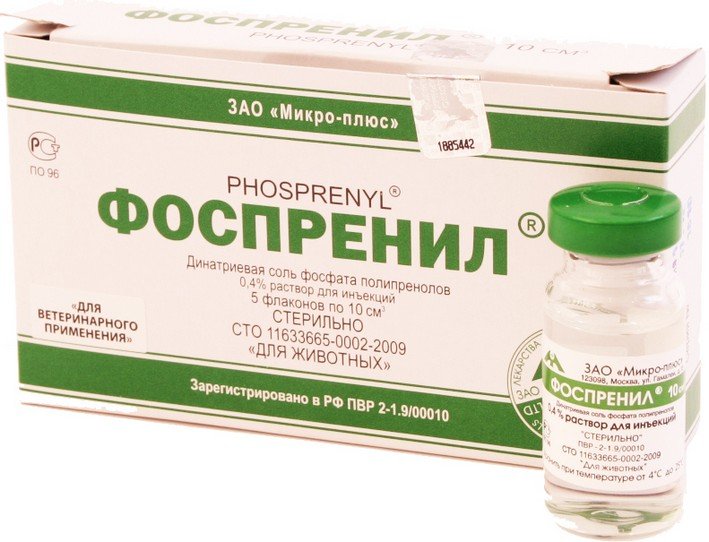 Инструкция по использованию Фоспренил (международное название «Phosprenyl») указывает на его применение для профилактики и эффективного лечения вирусных заболеваний, а также для поддержания прироста массы при снижении дозы кормления. Это иммуномодулирующее средство помогает справиться с такими инфекциями, как чумка, парвовирус, энтеровирус и аденовирус. Кроме того, препарат способствует повышению устойчивости организма и стимулирует выработку иммунитета при вакцинации.