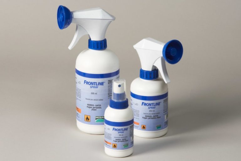 Фронтлайн спрей или комбо («Frontline Spray») используют для профилактики паразитов, а также в качестве средства для полного избавления от клещей, вшей, блох и пухоедов. Блокирование рецептов паразитов приводит к их полному параличу. Компоненты препарата распределяются по всему телу после распыления капли, скапливаются в сальных железах и оказывают защитное воздействие на протяжении длительного периода (до трех месяцев).