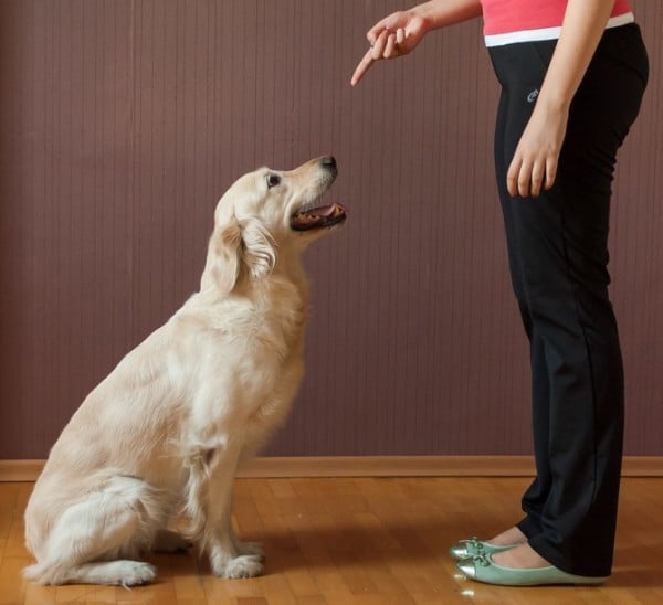 - Сначала песику позволяют лечь у левой ноги хозяина (следите, чтобы питомец всегда находился именно рядом с левой ногой).