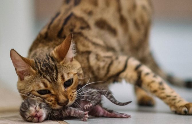 Кроме того, после кесарева сечения инстинкт материнства может проявиться слабо или же не проявиться вовсе. Очень часто виной этому человек, потому что после родов постоянно находится возле котят, высовывает их из коробки, создает шум, берет на руки и проч. Этого нельзя делать ни в коем случае.