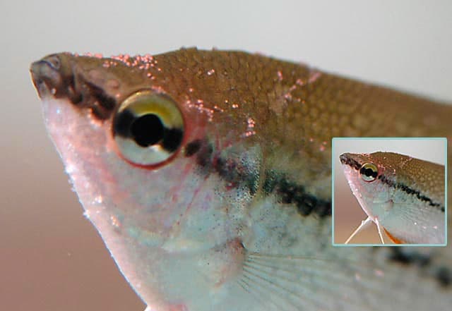 Чаще проблемы со здоровьем вызывает разница водной и комнатной температур. Заглатывая холодный воздух, гурами простужаются. Лечение состоит в регулировке температур.