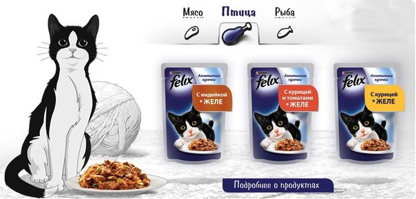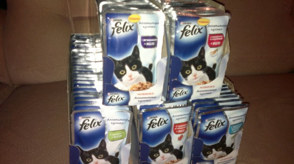 Феликс – это серия влажных кормов для кошек, которые упакованы не в традиционные жестяные банки, а в мягкие упаковки: