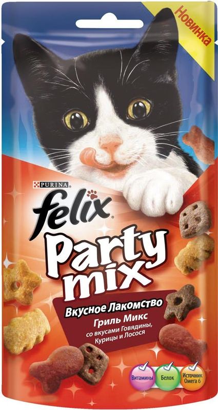 - Вкусное лакомство Party Mix – дополнение к основному рациону вашего питомца. Этот корм представлен в виде сухих гранул с различными вкусами мяса, птицы, рыбы или сыра.