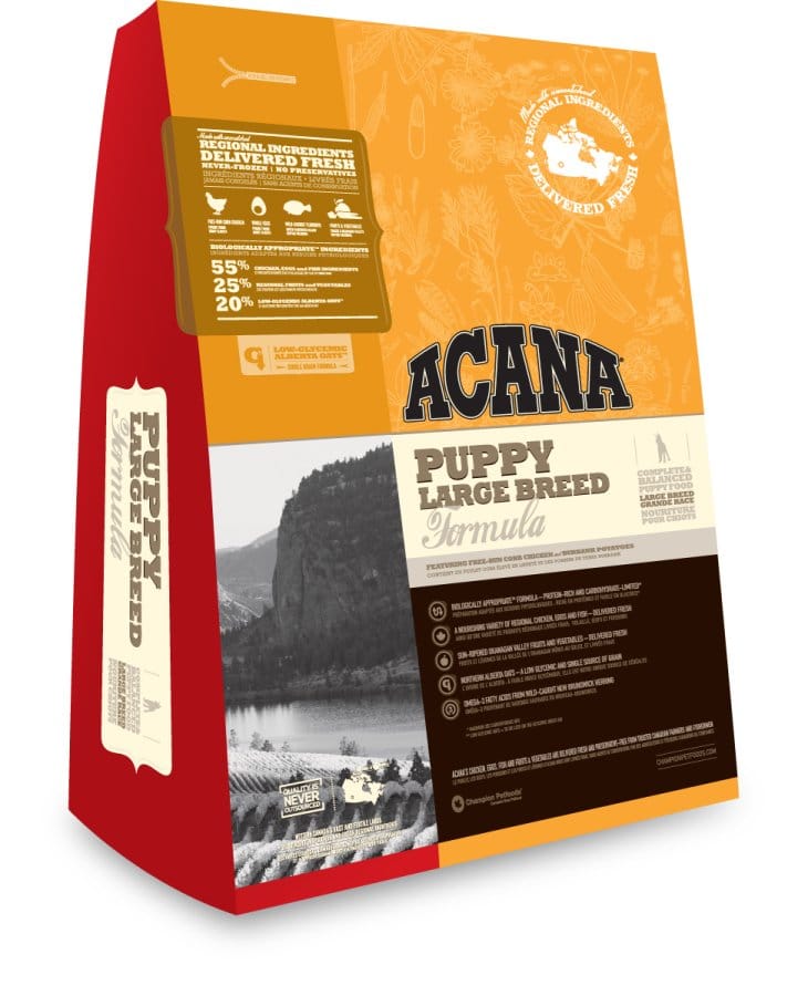 | Acana Puppy Large Breed | Свежее мясо курицы, индейки, яйца, цельная красная чечевица, зеленый горошек | Высокое содержание белка, низкий гликемический индекс, беззерновой, поддержка иммунитета |