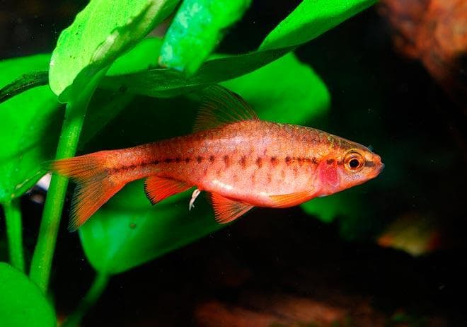 Вишневые барбусы – любимцы аквариумистов по всему миру. Ведь этот вид включает в себя красоту, грация, всеядность, активность и легкое размножение.
