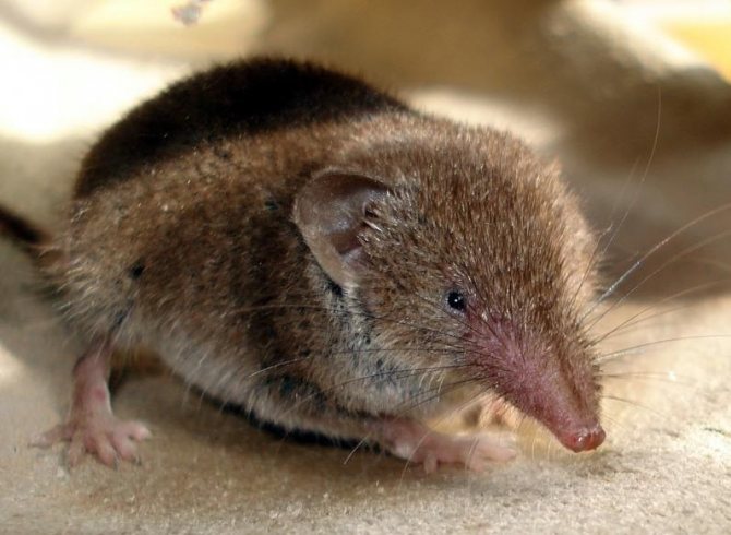 Землеройка – грызун, внешне напоминающий мышь-полевку. Отличительная внешняя черта – удлиненный нос в виде хоботка. С одной стороны, она приносит пользу, поедая насекомых-вредителей, личинок и дождевых червей. Но в это же время она роет под землей тоннели, повреждает корневую систему культурных растений.