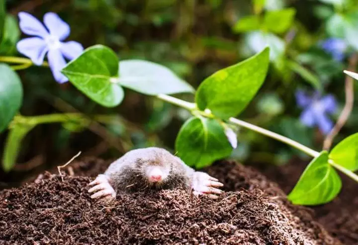 Крот имеет черный плотный шерстяной покров. Длина тела достигает 21 см. Этот слепой зверек отличается удивительным обонянием и слухом. Он поедает личинок насекомых и беспозвоночных червей. Основной вред, который крот наносит садовым культурам связан с повреждением корневой системы и корнеплодов во время формирования ходов под землей.