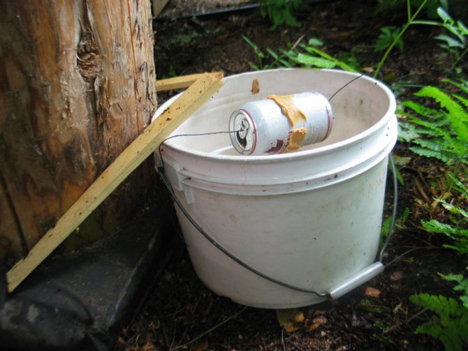 На нем размещаем приманку, которую любит мышь. Чтобы достать лакомство, мышь должна залезть на линейку, поэтому ведро ставим в месте, где поселился грызун. Тару на треть следует наполнить водой.