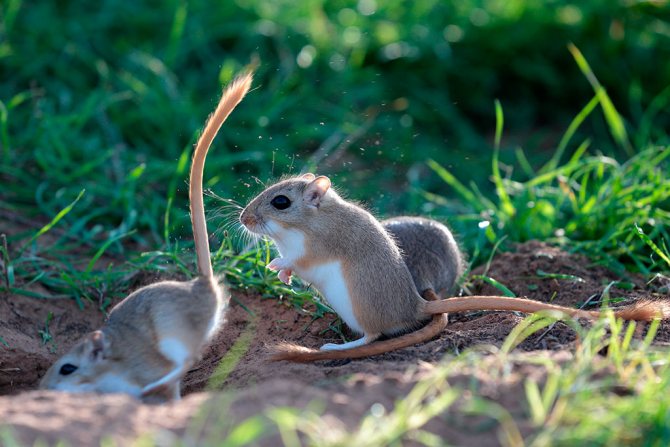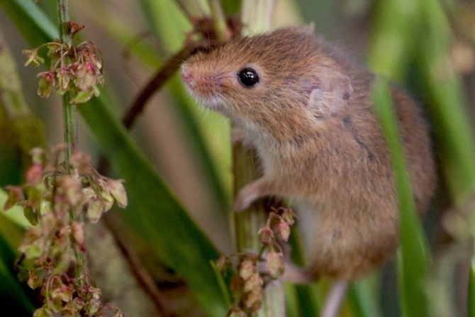 - Из мышей очень интересна мышь-малютка. Крошечная, кирпично-рыжего цвета, она живёт на лугах, нор не роет, а вьёт на высокой траве круглые гнёздышки, похожие на птичьи.