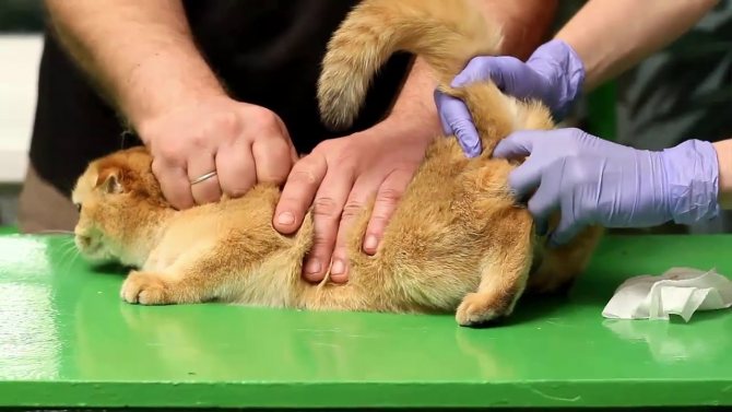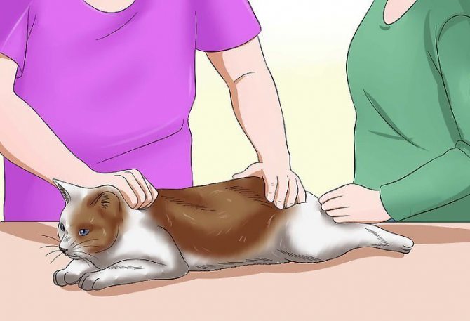 В случае затяжного запора коту можно сделать клизму. Для проведения понадобиться помощник, который во время введения препарата будет придерживать питомца.