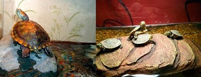- Суша должна находиться выше уровня воды, чтобы черепахи могли обсохнуть.