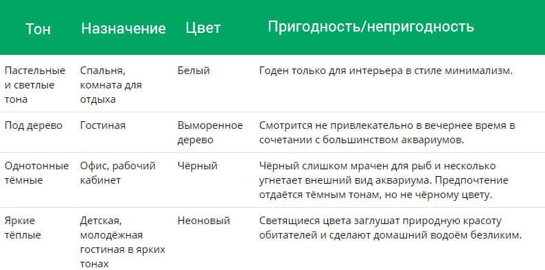 - Выбирая материалы, смотрите на цвет. Тумбочка не должна отвлекать от созерцания водоема. Не делайте подставку слишком яркой. Следите за тем, чтобы тумба не выбивалась из интерьера.